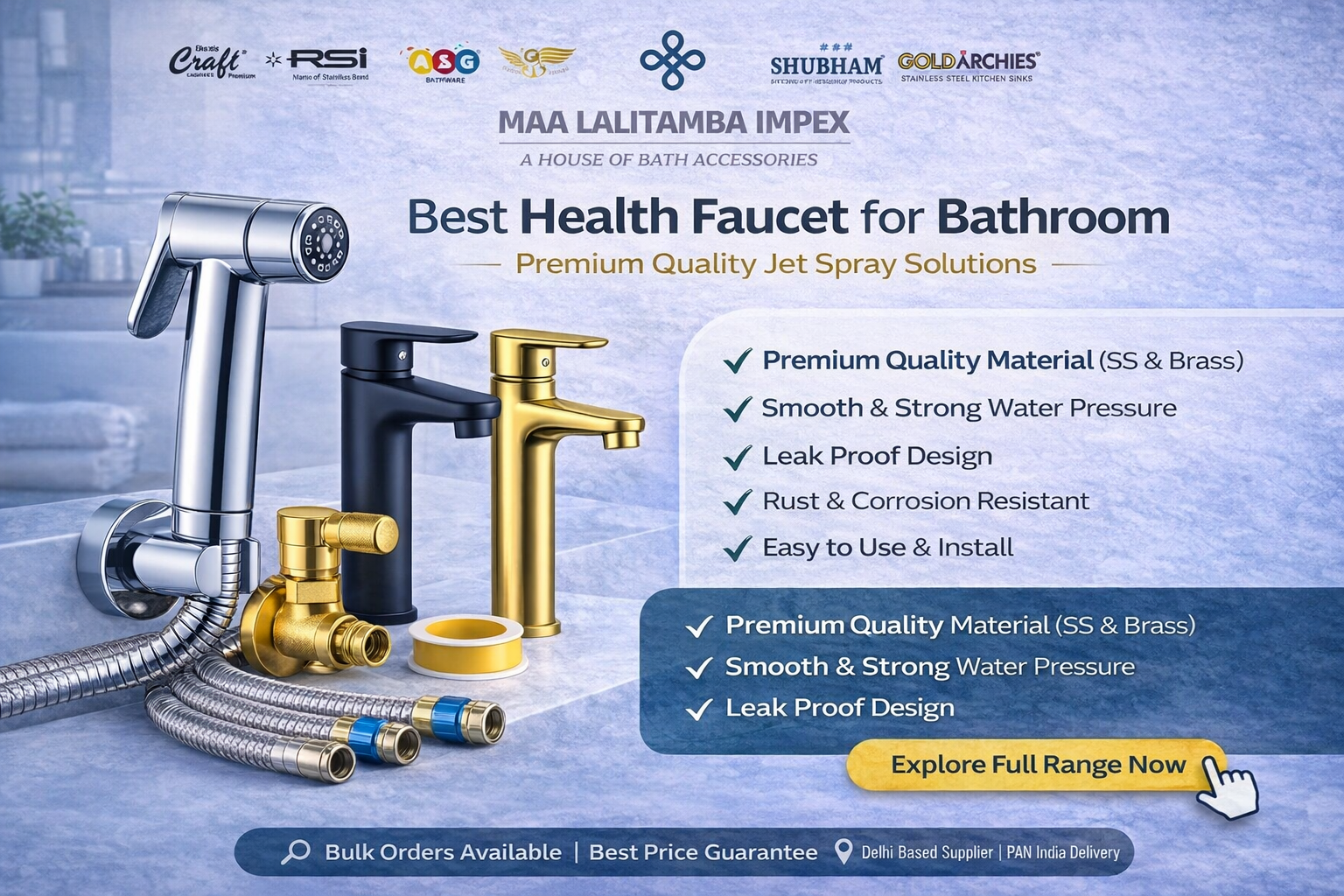 π· Introduction In todayβs modern lifestyle, hygiene has become more important than ever. One of the most essential bathroom accessories that ensures proper cleanliness is the Jet Spray, also known as a Health Faucet. It is widely used in homes, hotels, offices, and public ...