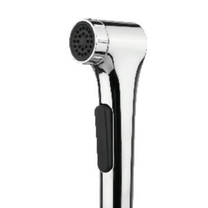 Compact 90° angle chrome health faucet with smooth lever control. Durable metal body with powerful spray and leak-proof performance.